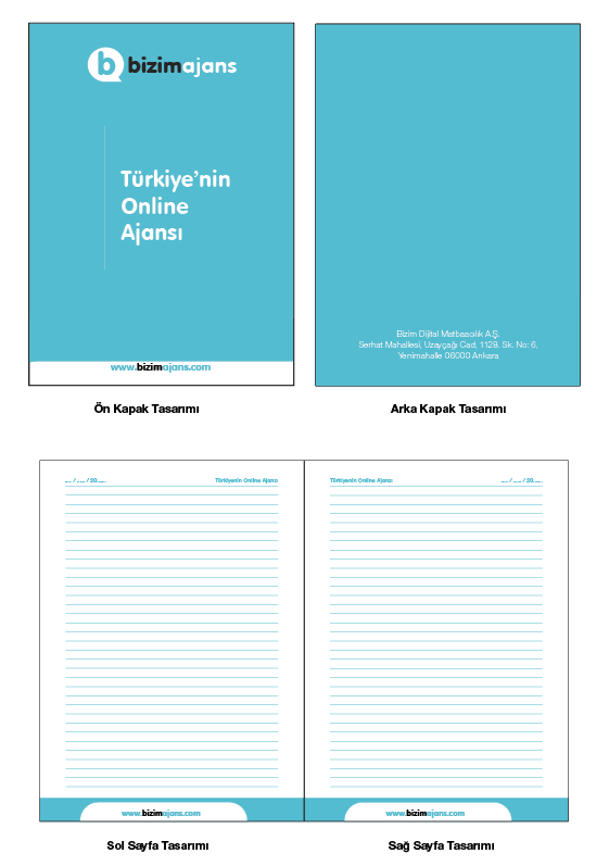 Online tasarım bölümünden kapak, arka kapak, sağ iç sayfa ve sol iç sayfa tasarımını yapabilirsiniz. Ya da baskıya hazır tasarımınızı yükleyip sipariş verebilirisiniz. Sağ iç sayfa ve sol iç sayfa tasarımınız sipariş ettiğiniz sayfa sayısı kadar çoğaltılıp arkalı önlü basılır.