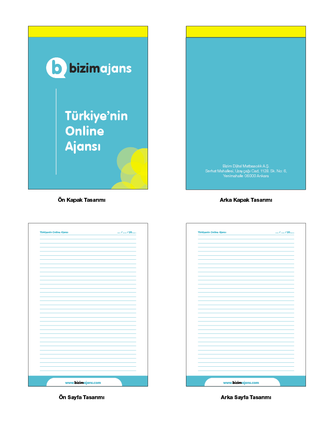 Online tasarım bölümünden kapak, arka kapak, ön iç sayfa ve arka iç sayfa tasarımını yapabilirsiniz. Ya da baskıya hazır tasarımınızı yükleyip sipariş verebilirisiniz. Ön sayfa ve arka sayfa tasarımınız sipariş sırasında verdiğiniz sayfa sayısı kadar çoğaltılıp arkalı önlü basılır.